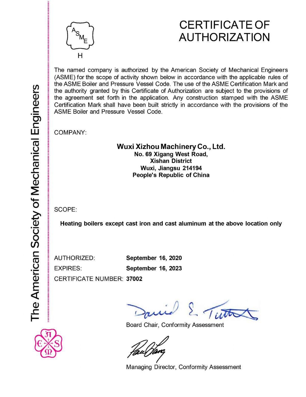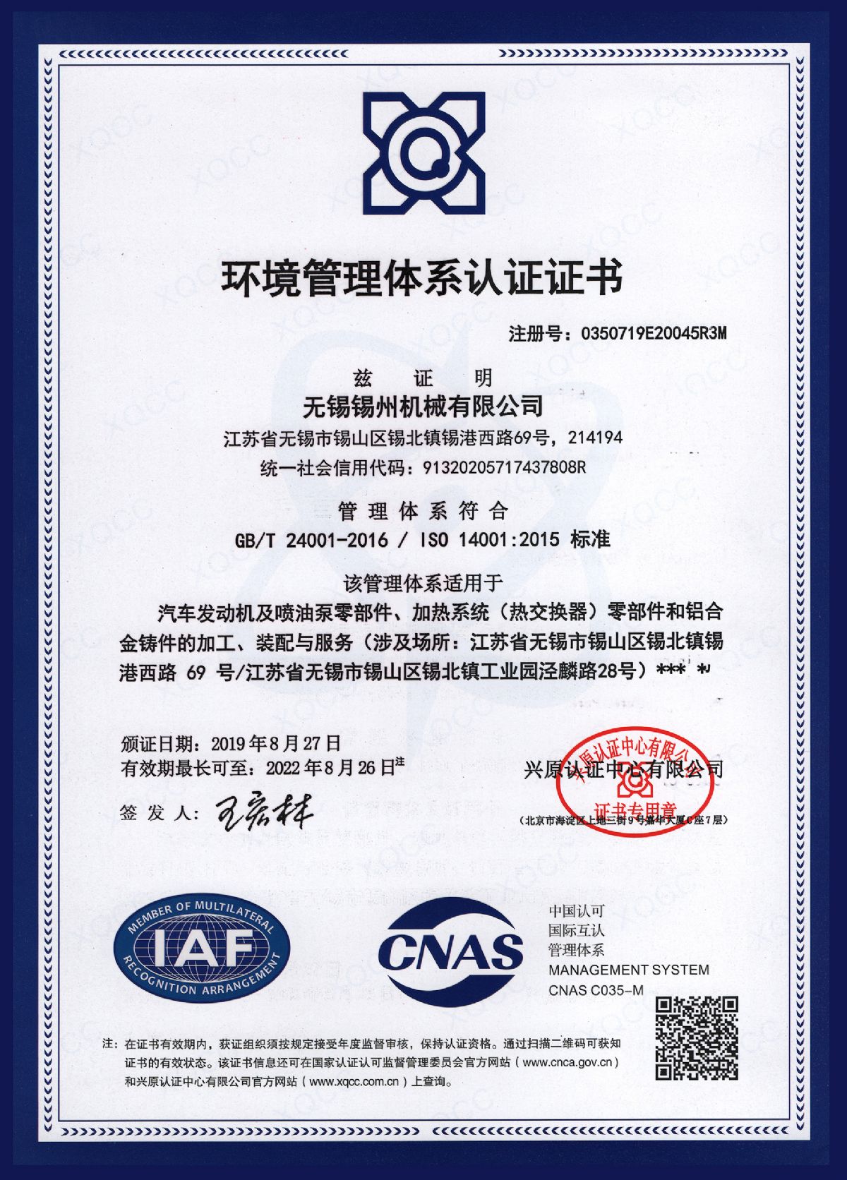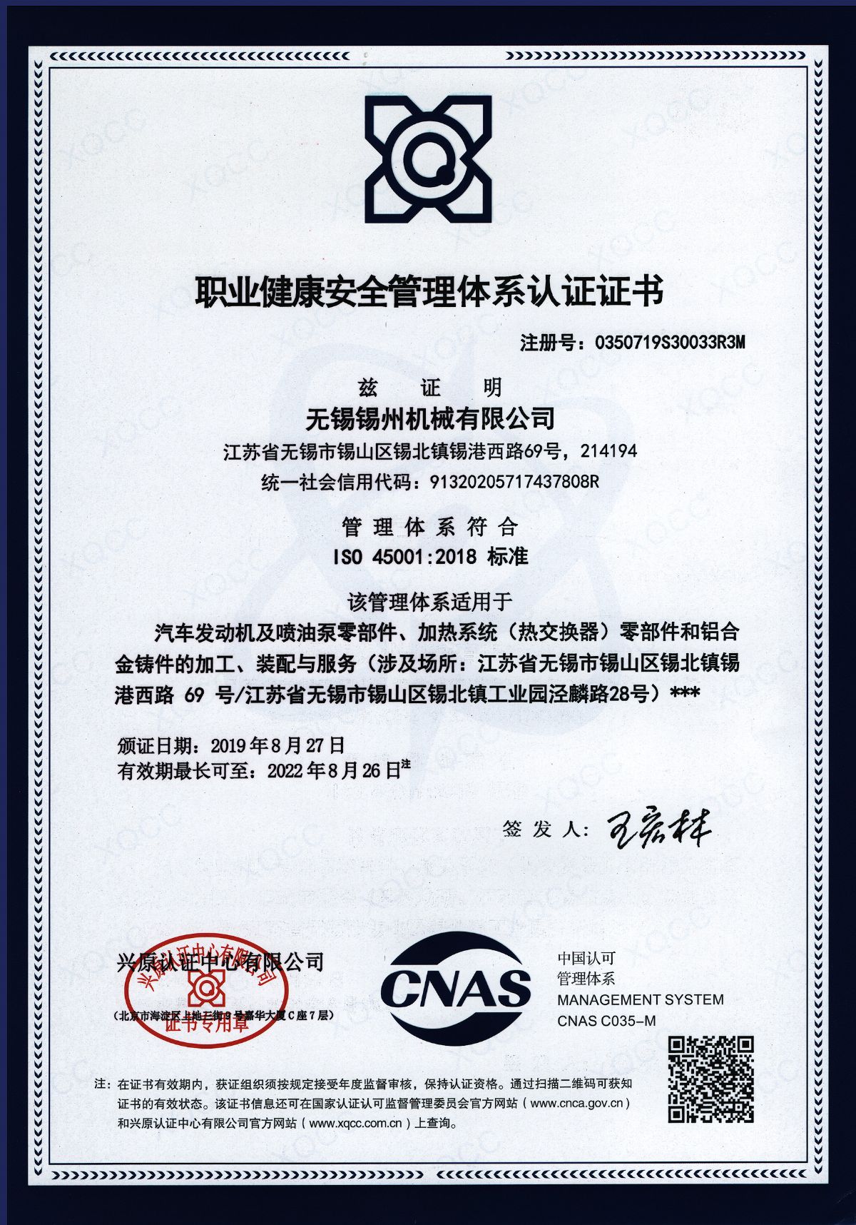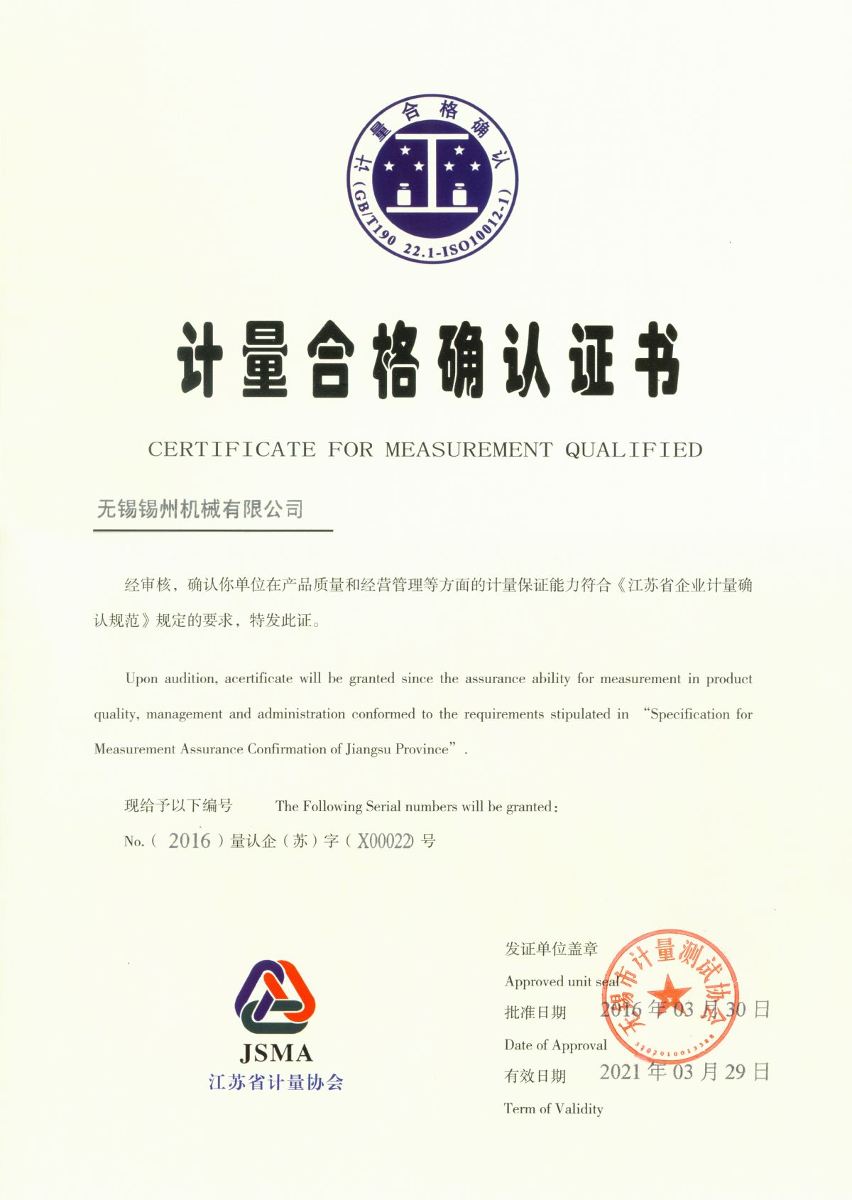 “ 以質量求生存,以管理增效益”是錫州機械堅定不渝的經營理念;“質量第一、客戶至上”是錫州機械堅持不懈的追求;“ 以人為本,鑄就優質產品, 精益求精,增強顧客滿意”是錫州機械持之以恒的質量方針。 2001年7月公司通過ISO9001:2000質量體系認證, 2005年9月通過ISO/TS16949質量體系認證。公司于2007年7月通過產品ASME認證。 通過開展以產品質量為中心的企業管理,公司以先進的生產檢測設備、完善的質量保證體系、嚴密的產品開發體系、嚴格按照標準開展產品生產管理,并開展6S現場管理,竭盡全力創造一個比較清潔、健康、安全的環境,全方位地滿足國內外客戶的要求。